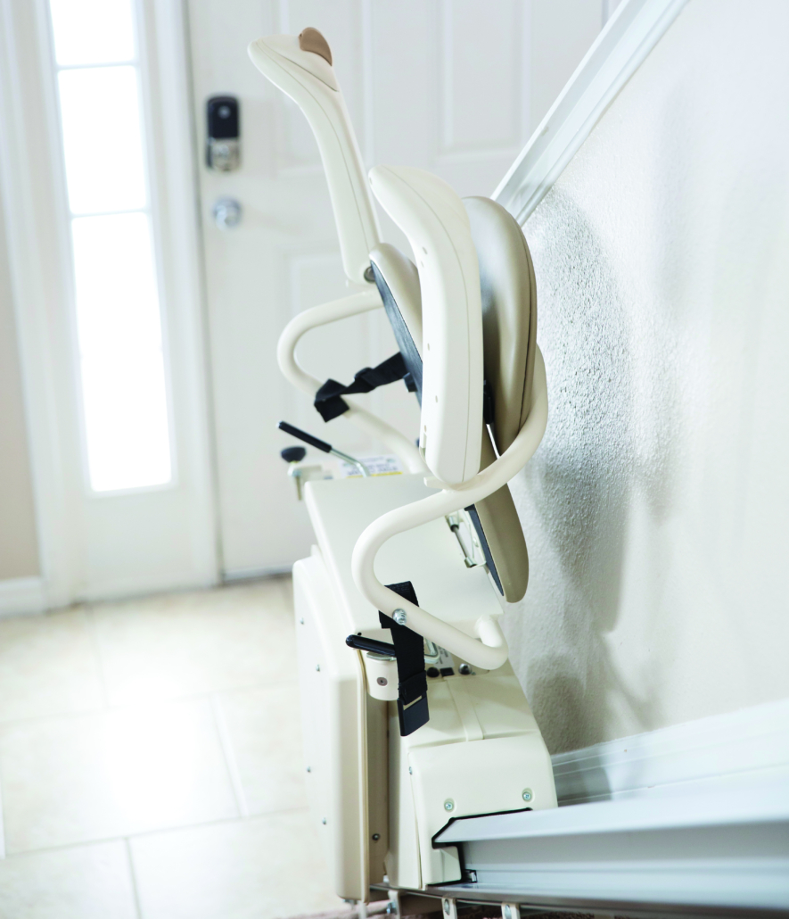 - All stairlifts can be folded up to maximize the available space in your home. The footplate and seat can be folded up to increase available space, leaving the staircase as clear as possible for other users.